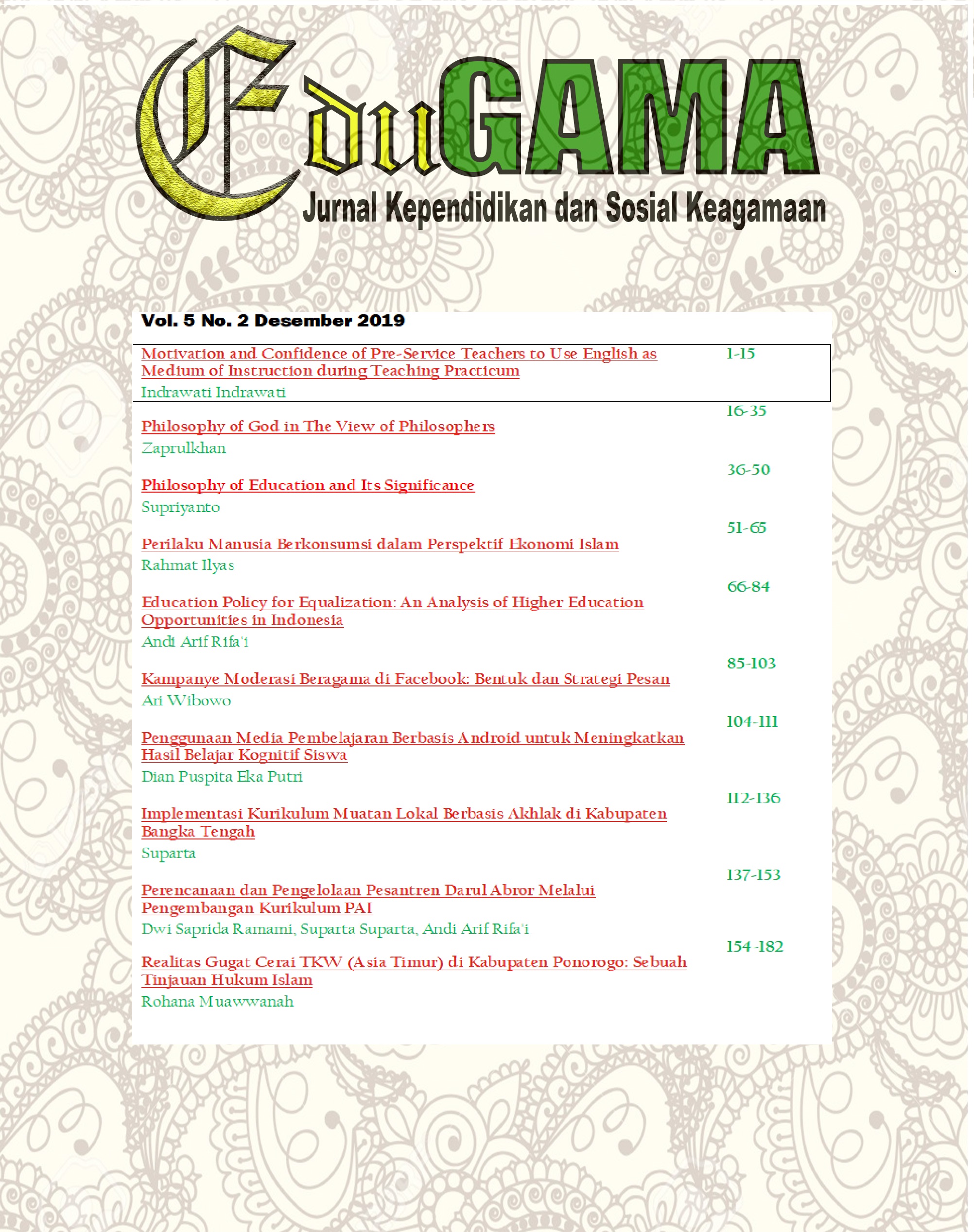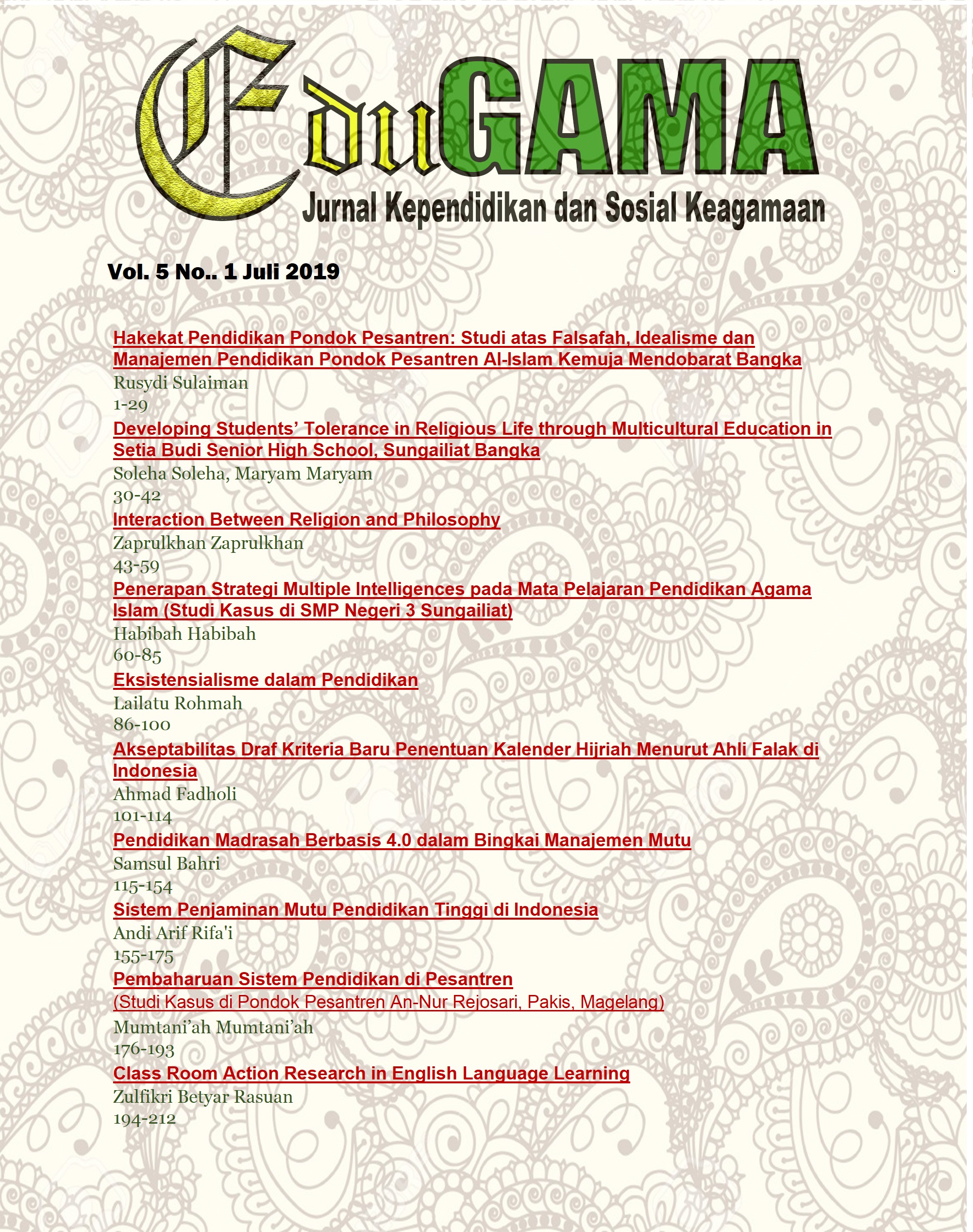 Focus and Scope This journal departs from philosophy of Religious Education, which aims at becoming contain ideas, research results in educational, social and religious.