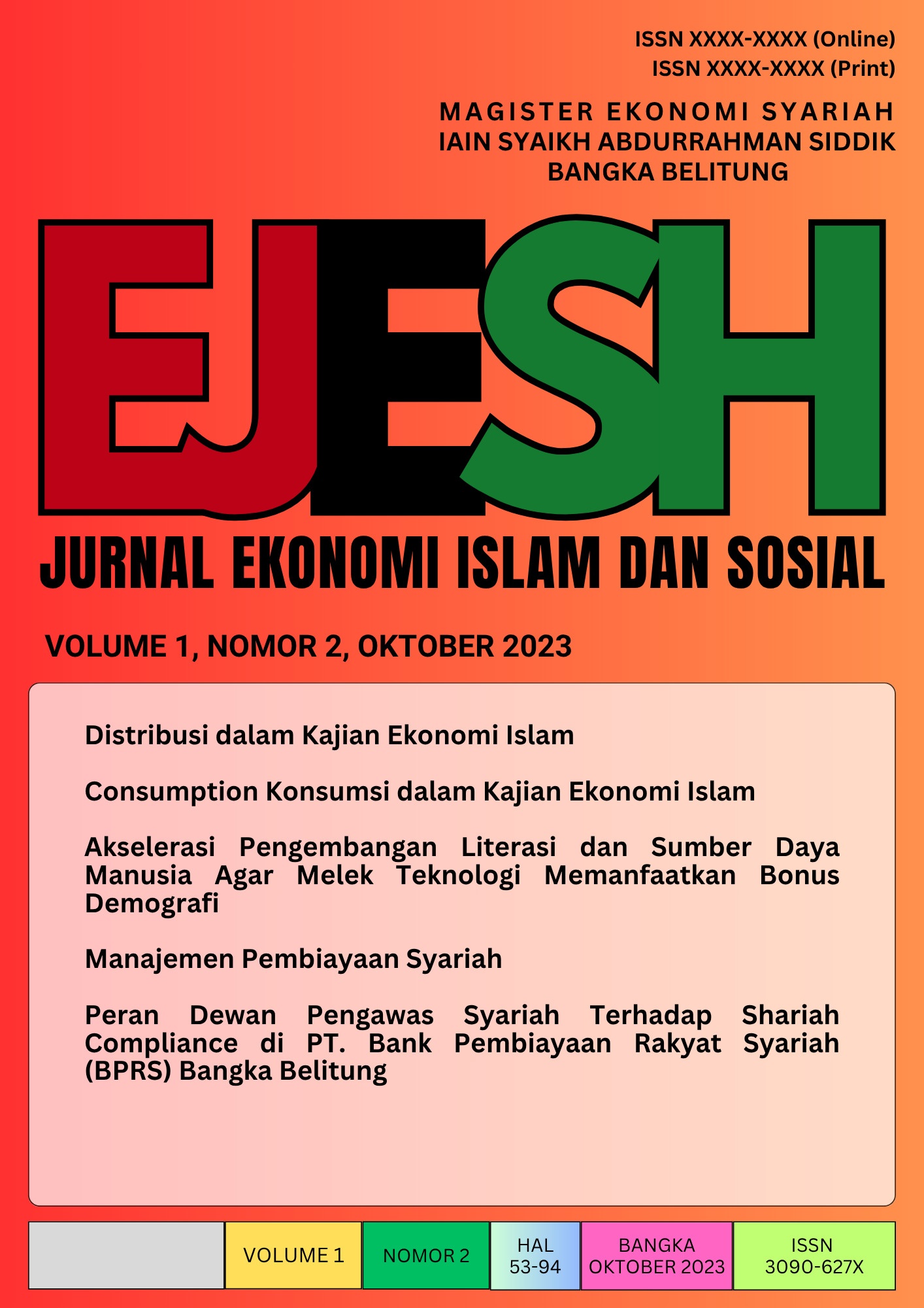 EJESH: Jurnal of Islamic Economics and Social