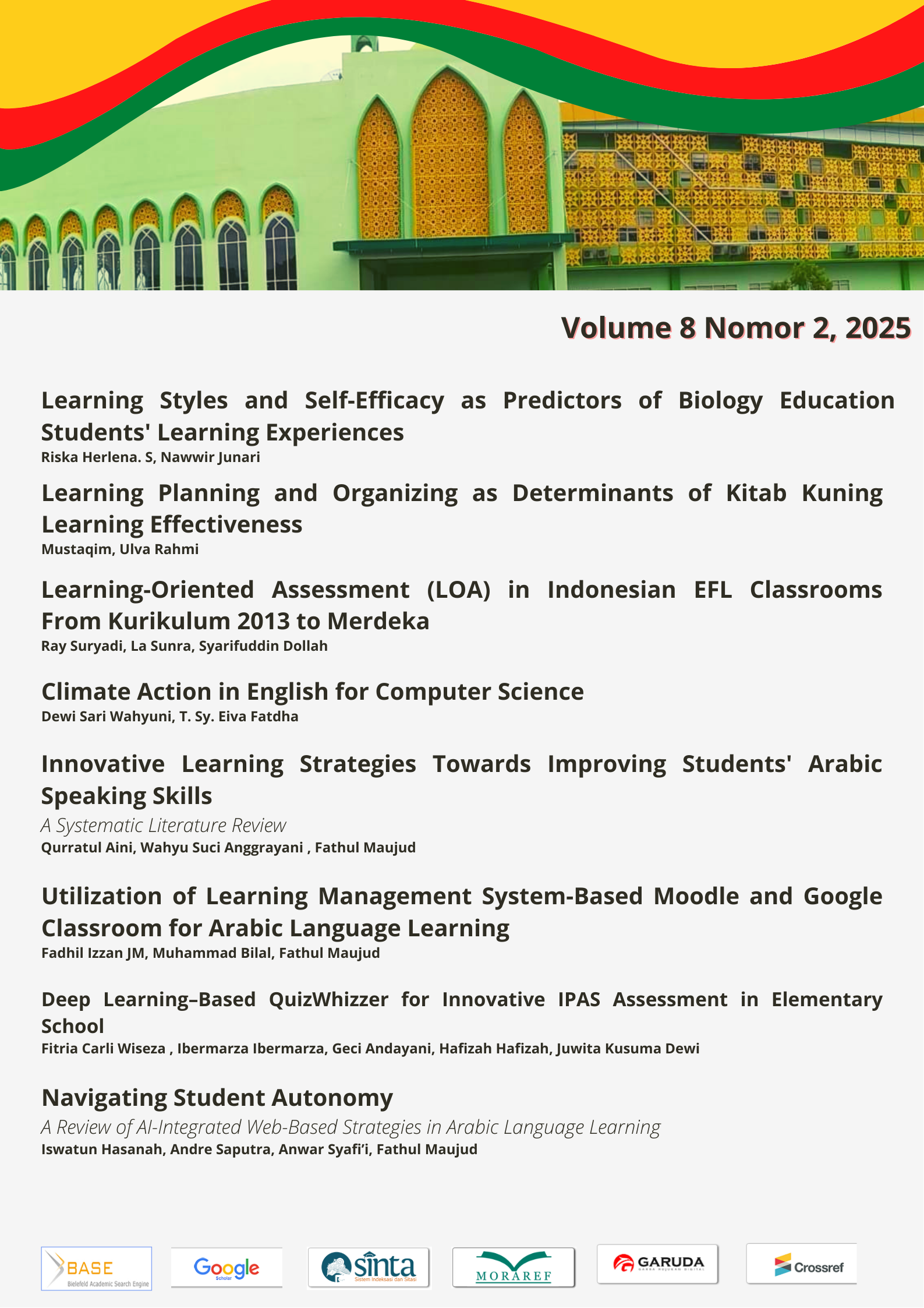 This study presents a Systematic Literature Review (SLR) on innovative instructional strategies designed to improve students’ Arabic speaking skills (mahārah kalām) across varied educational settings. The review applied the PRISMA (Preferred Reporting Items for Systematic Reviews and Meta-Analyses) procedure, including identification, screening, eligibility, and inclusion stages. Literature was retrieved from Google Scholar using keywords related to Arabic pedagogy and innovative learning. A total of 250 articles were initially found; 175 were excluded because they did not focus on speaking skills or did not meet methodological and thematic criteria. The remaining 75 studies published between 2015 and 2025 were analyzed qualitatively. The synthesis shows that Project-Based Learning (PBL), Total Physical Response (TPR), muhadasah practice, eclectic methods, and technology-enhanced media consistently contribute to improvements in fluency, pronunciation, vocabulary mastery, and communicative confidence. These strategies demonstrate alignment with communicative, behaviorist, cognitive, and constructivist learning paradigms through authentic communication, reinforcement, cognitive engagement, and experiential learning. Despite these promising results, research gaps remain, particularly the lack of comparative studies and limited exploration in higher education and nonformal learning contexts. The study underscores the need for integrative, technology-driven instructional models to strengthen Arabic-speaking pedagogy responsive to twenty-first-century learning demands.